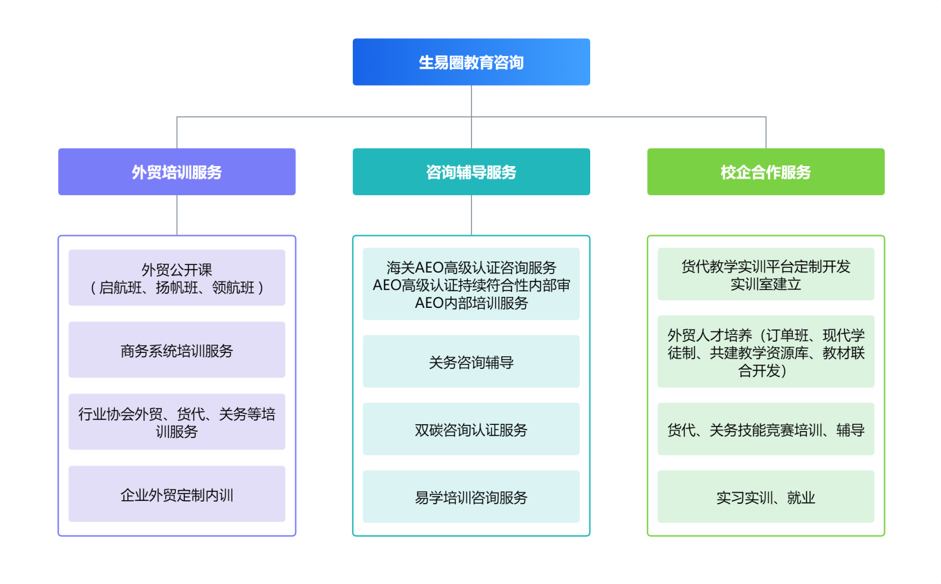 公司結合國際供應鏈外貿綜合服務及人才優勢,立足外向型企業人才需求,成立湖南生易圈教育咨詢有限公司。